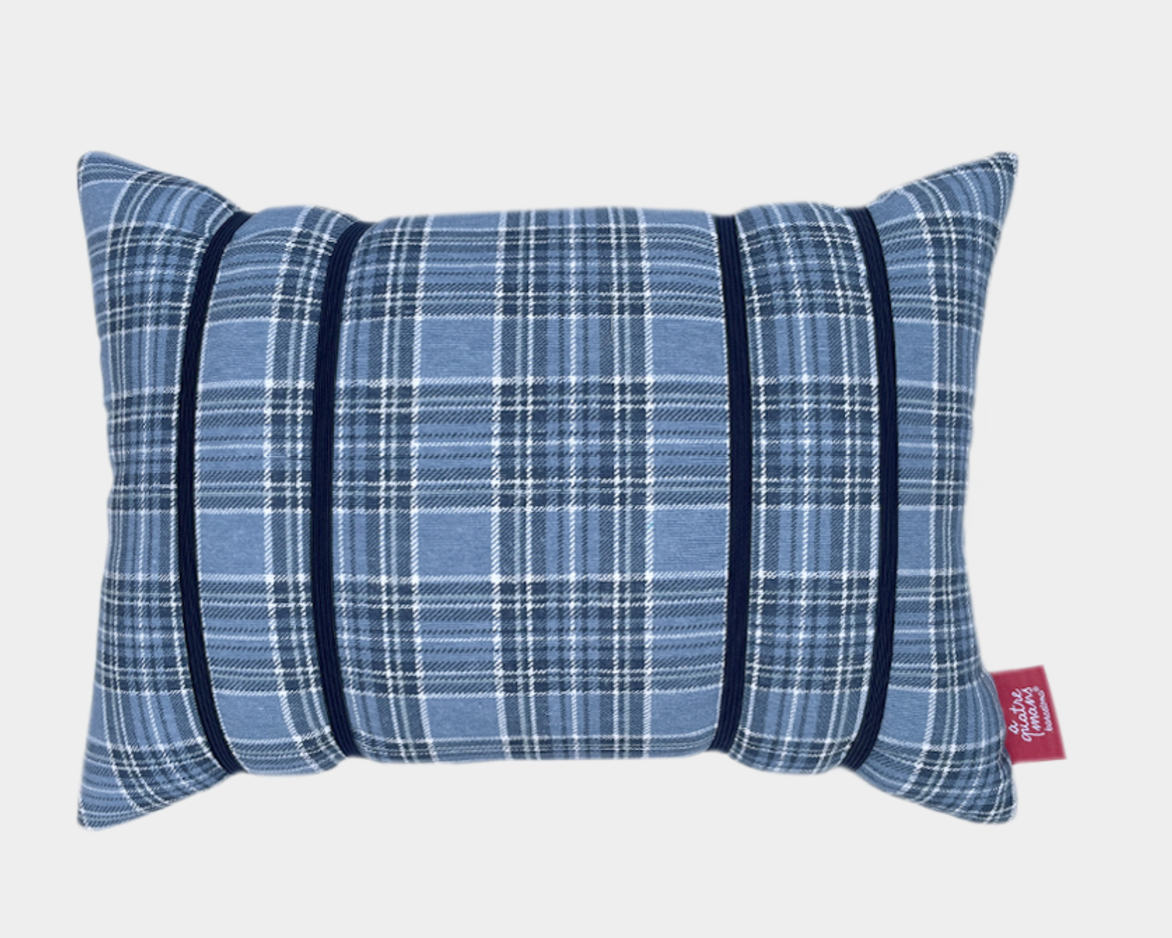 Fet de tela estampada amb el típic quadre escocés de color vermell i farcit de perles de poliestirè que li permeten adaptar-se perfectament a qualsevol superfície i li donen prou consistència per aguantar per si sol, amb la inclinació adequada. Les quatre gomes elàstiques combinables el fan adaptable a qualsevol element que hagi de subjectar. No pesa res, menys de 200 g i és molt pràctic, la seva mida perfectament estudiada el fa còmode, àgil i fàcil de portar a tot arreu.