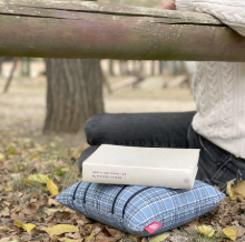 Presentació: El coixí es presenta amb una banda de cartró kraft amb il·lustracions i explicacions d’ús.