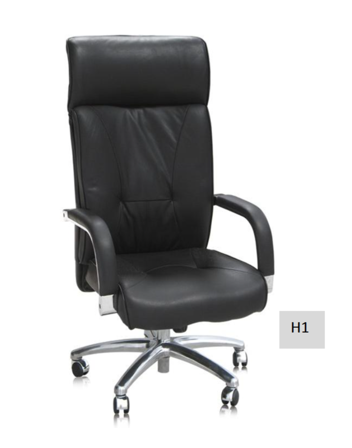 Silló model confort, de rodes anti ratllades, amb un disseny d’espatlla ergonòmica amb respatller alt, amb còmodes braços forrats de cuir.